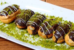 125 gram tereyağı 1 su bardağı su Bir tutam tuz 1 su bardağı un 4 adet yumurta Dolgu kreması için: Yarım su bardağı tozşeker 1 çorba kaşığı un 1 çorba kaşığı buğday nişastası 2 adet yumurta sarısı 2 su bardağı süt 1 çorba kaşığı tereyağı 1 paket vanilya Üzerine: 180 gram bitter çikolata 1 tatlı… Tarifi »